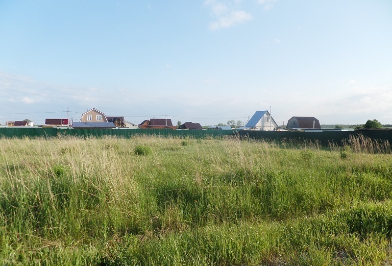 Два соседских забора слева и справа, с тыла и с фасада забора нет.